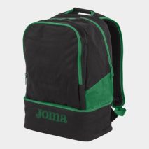 Mochila con refuerzo en la espalda y con cajón interior para zapatillas. Logo serigrafiado. Composición: 100% Poliéster Capacidad: 23,8 litros Tamaño: Alto: 46 cm (14 cm de zapatillero) Ancho: 32 cm Fondo: 20 cm